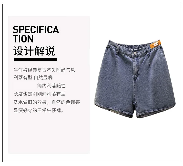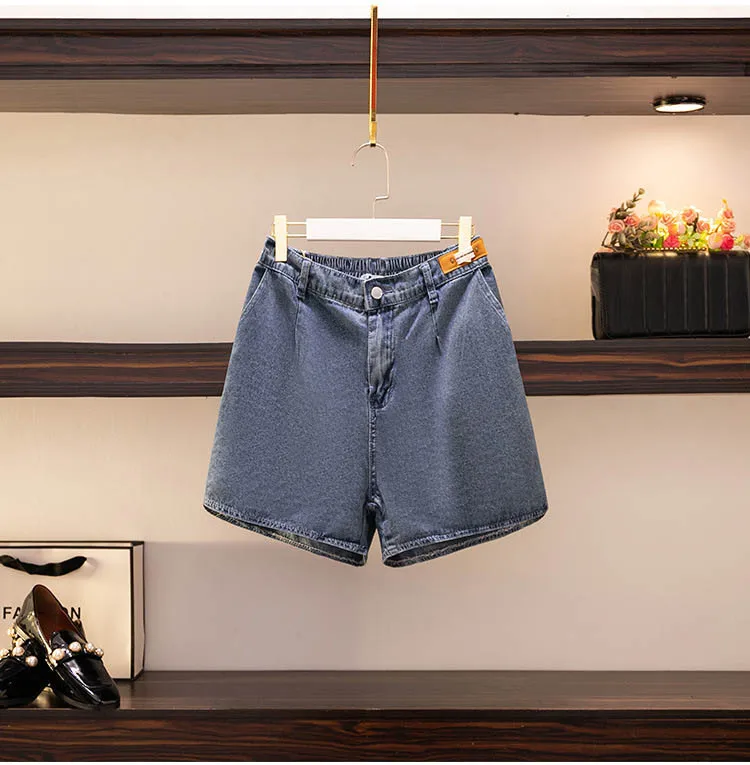 150Kg Plus Size Women's Elastic Waist Denim Shorts Summer Hip 152 Loose Wide-Leg Slit Hot Pants Blue 5XL 6XL 7XL 8XL 9XL