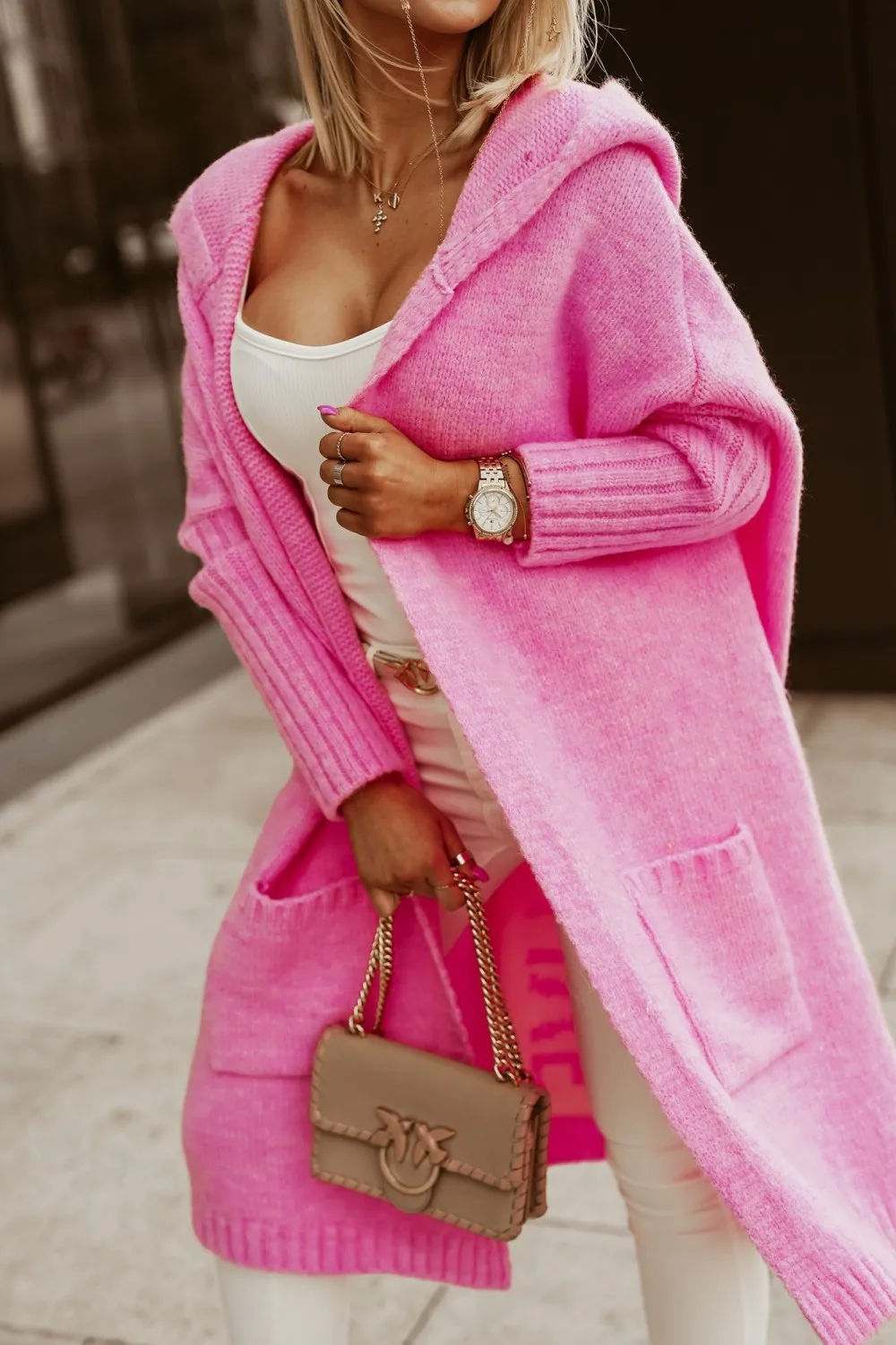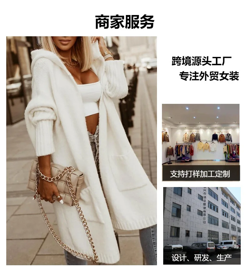 2023 Autumn and Winter New Sweater Cardigan Lapel Hooded Long Letter Wool Loose Knit Coat Women Cardigan