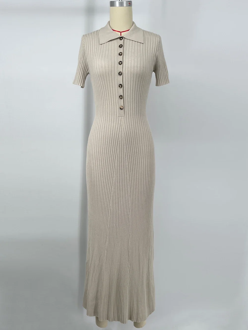 DAENERYS RES Spring Summer Fashion Women Dresses Knitting Short Sleeve Office Lady Chic Casual Lapel High Street Vestidos 2024
