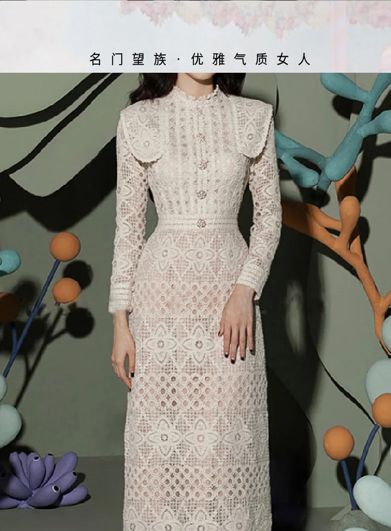 French Style Women's Prom Dress Elegant Long-sleeved Waist Cut-out Lace Short Skirt Evening Party Dresses For Women Vestidos