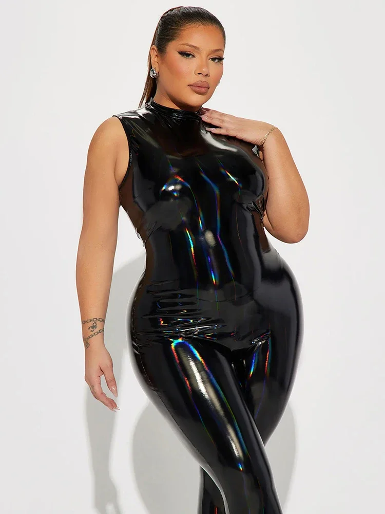 Plus Size Jumpsuits Women Patent Leather Sleeveless Tank Jumpsuit Sexy Shiny Leather New Rompers Dance Pole PVC Clubwear Custom