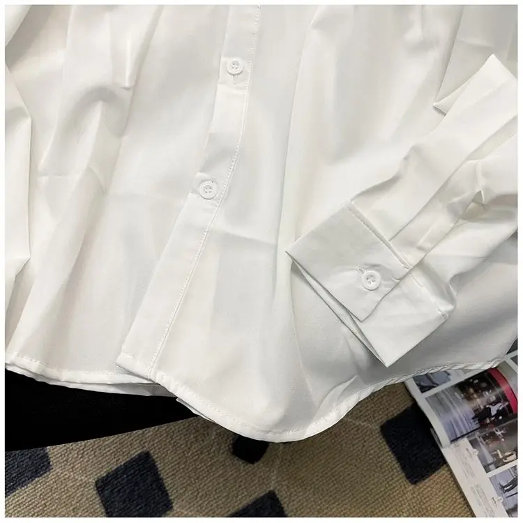 White Long Sleeved Shirt Women's Spring And Autumn New Knitting And Splicing Loose Casual Top
