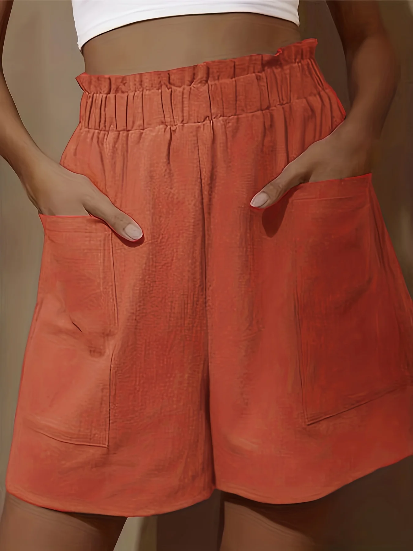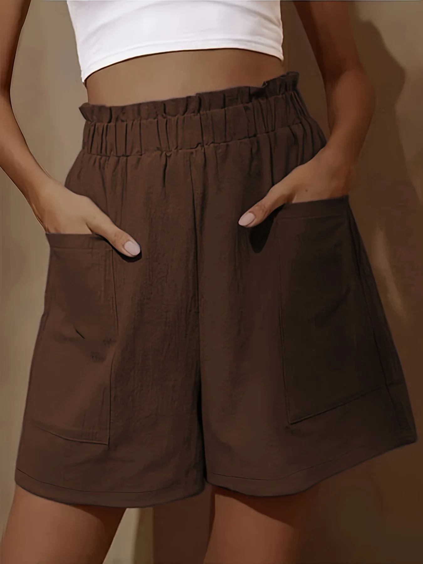 Woven Shorts with Pocket for Women, Loose Pants, Plus Size, Fungus Edge