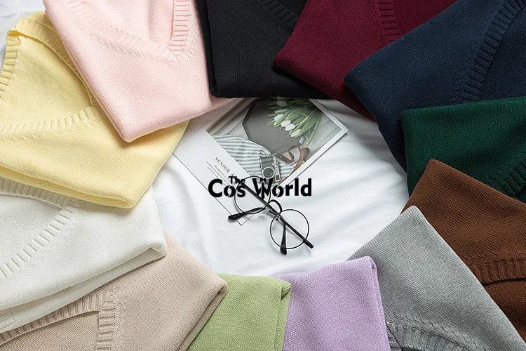 XS-XXL Spring Autumn Men's Women's Solid Color Sleeveless Knit Vests Pullovers V Neck Sweaters Coat For JK School Uniform